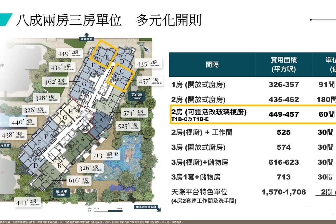 合共提供559个单位分层住宅。其中高座住宅大楼共设有453个单位分层住宅;而4栋低座大楼合共提供106个单位。