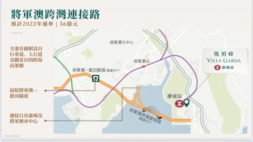 凯柏峰 II Villa Garda II”房产项目位于将军澳日出康城,整个日出康城社区于2008年开始建设,预计于2025年全部完成。整个区域背山面海,西面及南面均为大海,东面及北面则为山,其中东面为清水湾郊野公园。将军澳区内配套成熟,已发展为条件优厚的时尚社区,休闲娱乐购物设施应有尽有