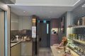 厨柜配有浅灰色吊柜和浅色木地板柜。家用电器齐全,为加工食品原料提供足够的空间。厨房还连接有储物单元和卫生间。